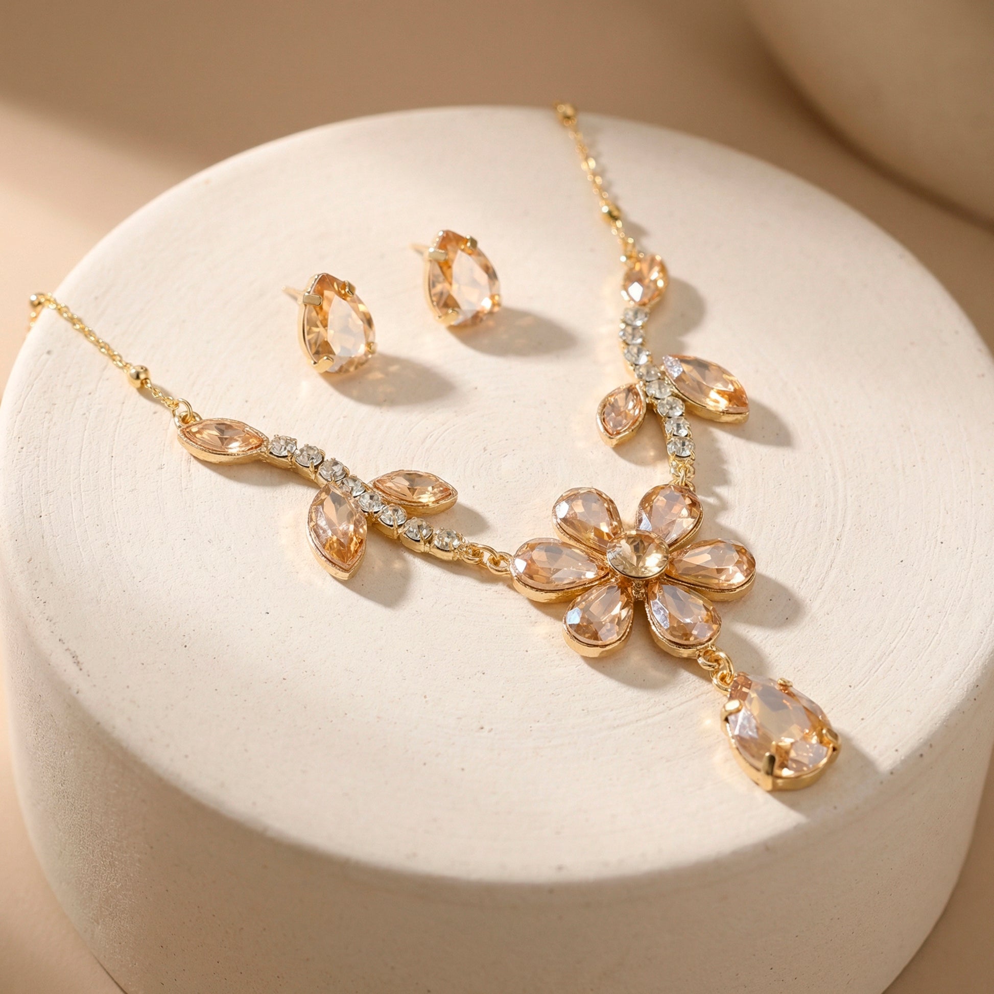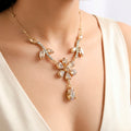 PRAO Necklace Anti-Tarnish Flowery Crystal Set With Earrings