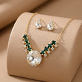 PRAO Necklace Anti-Tarnish Round Crystal Statement Set With Earrings