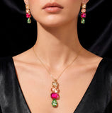 PRAO Necklace Anti-Tarnish Drop-Shaped Crystal Pendant Set With Earrings