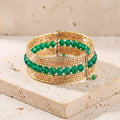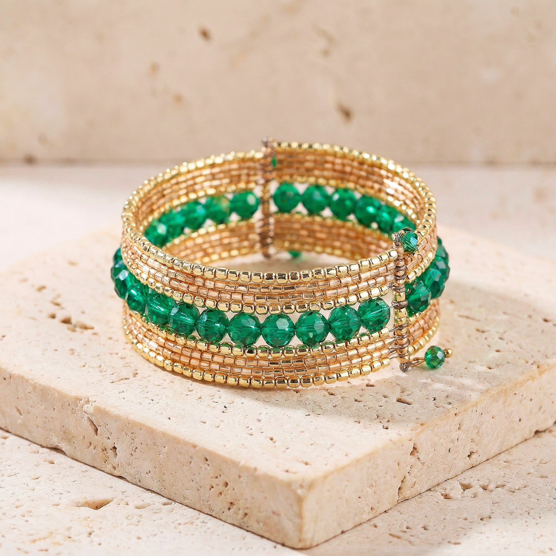 PRAO Bracelet Anti-Tarnish Bugle and Bead Broad Flexible Cuff