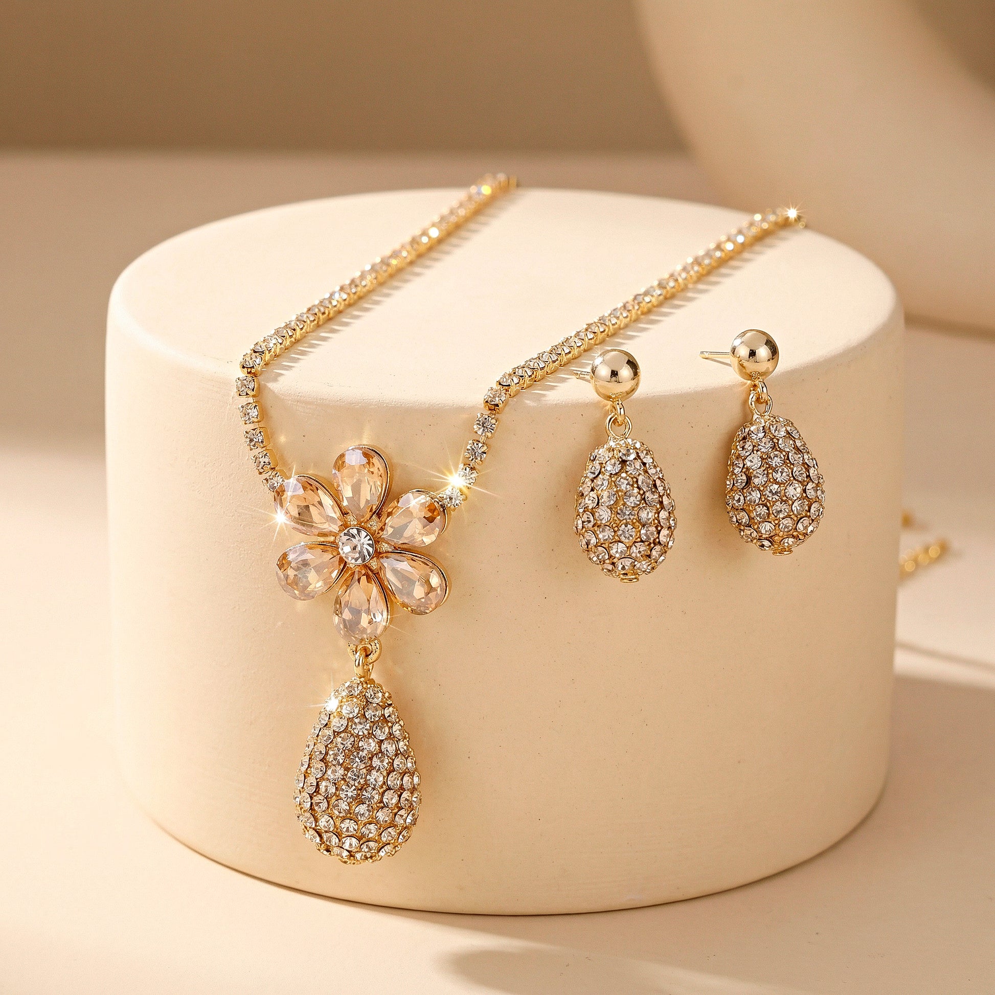 PRAO Necklace Anti-Tarnish Drop Flower Pendant Set With Earrings