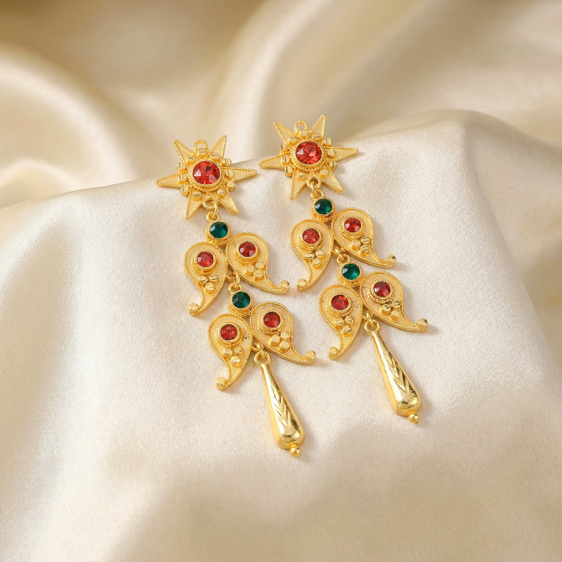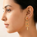 The classic paisley motif, which is renowned for its exquisite curves and rich cultural charm, served as the inspiration for these ethnic long dangling earrings. They have an elongated silhouette that draws attention to face features and adds movement with each step, making them stand out. While retaining a well-balanced, sophisticated appearance appropriate for contemporary styling, the elaborate ornamentation showcases traditional artistry. They are stylish yet lightweight, and they are comfortable enough to wear for lengthy periods of time during weddings, festivals, and other cultural gatherings. The adaptable style looks great with kurtas, lehengas, sarees, and even fusion ensembles. These earrings add the ideal balance of heritage, style, and sophisticated ethnic appeal to any look, whether they are worn as a statement piece or to finish off a traditional outfit.